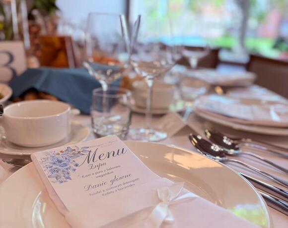 Zamiast całonocnej zabawy, coraz więcej par decyduje się na wyrafinowany obiad weselny. Zapewniamy eleganckie otoczenie, doskonałe do spokojnego świętowania w gronie rodziny